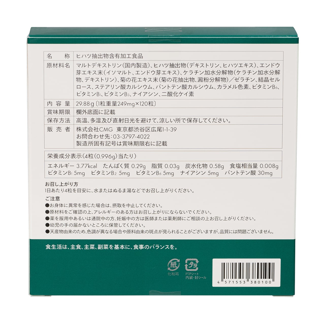 美髪・育毛サポート、抜け毛ケア、頭皮ケア、栄養バランスの調整、ビタミンB群やパントテン酸及びケラチンの成分補給、血流促進サポート、白髪の進行抑制をサポート